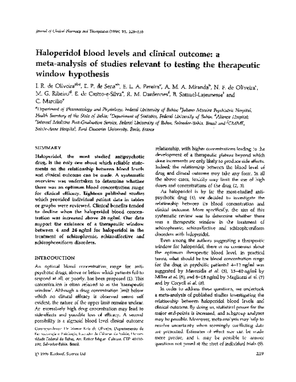 Pdf Haloperidol Blood Levels And Clinical Outcome A Meta